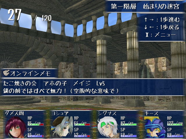 迷宮を進んでいると時折他プレイヤーが残したオンラインメモが表示されるのですが、やはりというかなんというかネタに走る人も多いようです。何気に面白い。