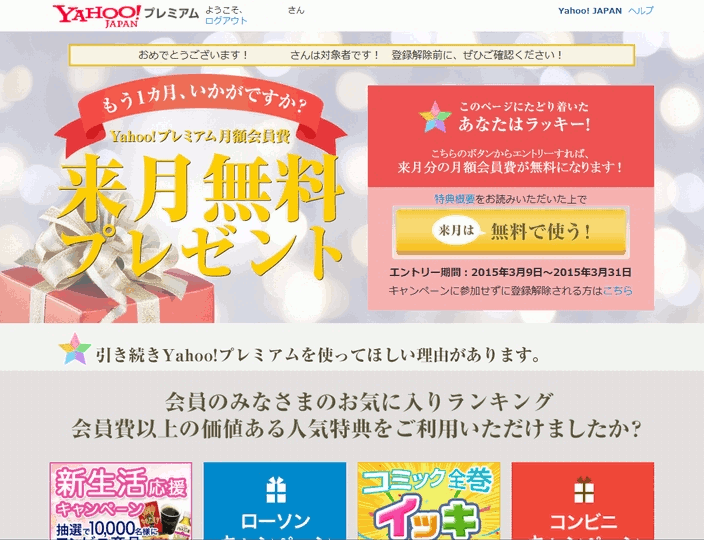 結局何が言いたいのかというと、現在Yahoo!プレミアムに登録している人は やめるふりをすれば1ヶ月タダになるかもしれない サービス利用してないのに登録が残ったままで無駄な出費が発生していないか、一度チェックしてみてはどうでしょうか? ということです。